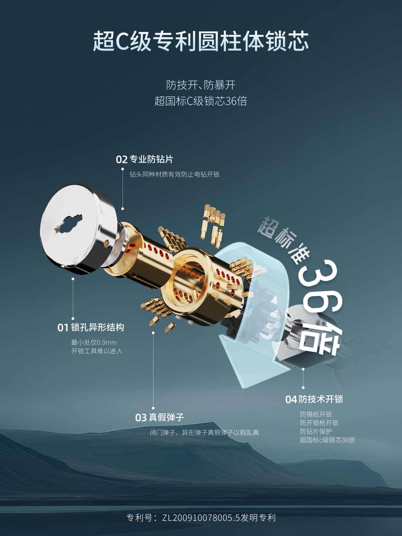 在锁芯方面,王力安防的超C级圆柱体专利锁芯构筑了行业难以逾越的防盗系统,防技开能力远超国家C级标准的36倍。其通过304不锈钢全包裹结构抵御钳制破坏,同时锁芯内部拥有闭门弹子、异形弹子和真假弹子等多重防护,异常触发即二次锁死。此外,通过嵌入防钻片、防钻销可同步抵御电钻攻击与扭断暴力开启。自2003年“挑战开锁王”活动以来,该锁芯22年来从未被技术开启,甚至不少开锁公司明确标注“开锁,王力门锁除外”,体现出行业对其安全性的公开认可。